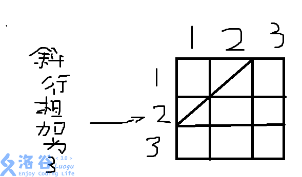 在如图的斜线中,两个点的和都为3.首先重要的就是三维F数组。