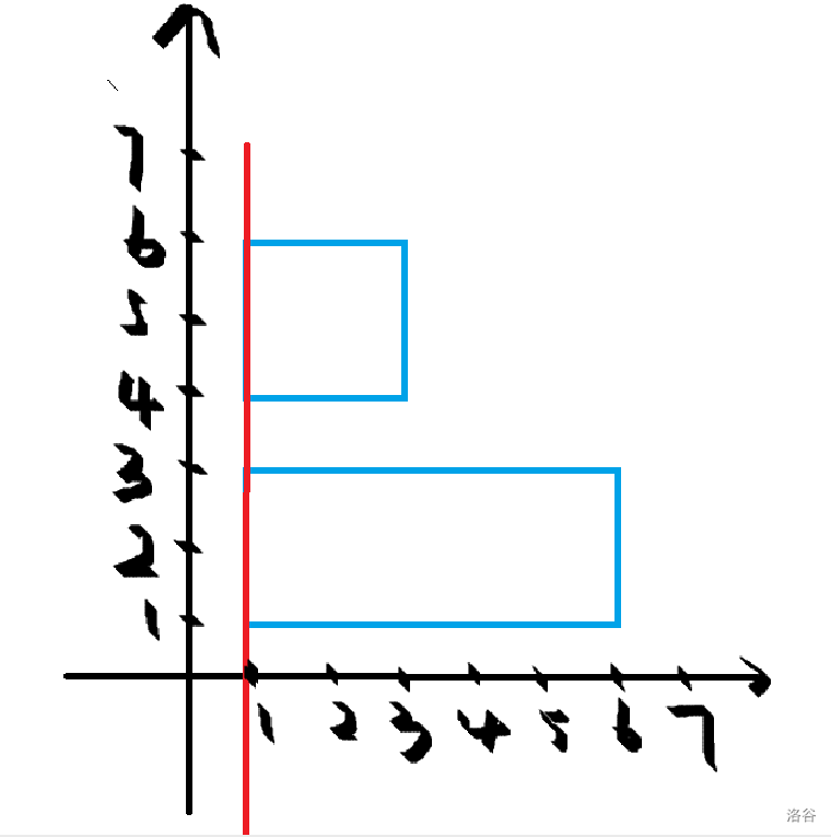 可以看到两个矩形的左边的边都在 轴上。现在我们考虑怎么把奶牛放在 y 轴上。