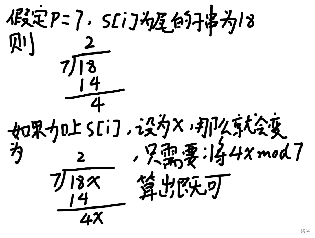 我们定义 表示所有以 结尾的子串除以 的余数是 的子串的数量。