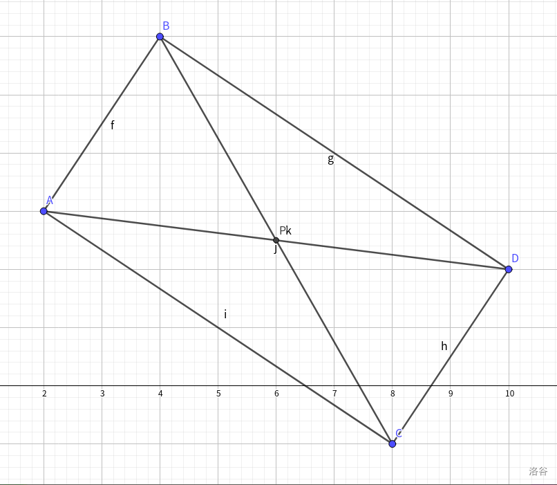 其中,点为输入的点,是所求的点,对角线交点为