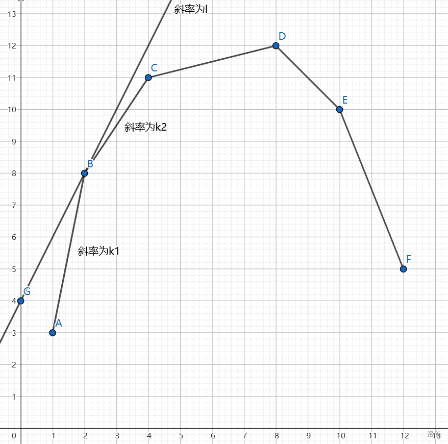这个东西可以抽象为:一条斜率为 并且经过点 的直线在纵轴上的截距。于是可以对所有 构建一个上凸壳,最优决策点一定在凸壳上。