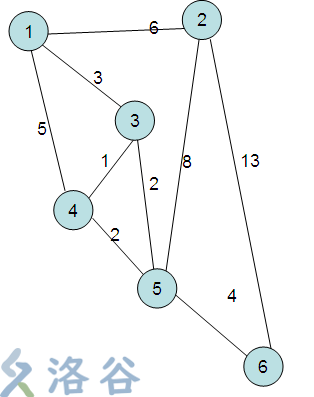 给出一张含6个点,9条边的图,要求求出每两个点之间的最短距离。