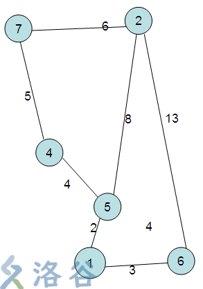 原因很简单,DP要保证正确性,就要保证每阶段的决策都是最优解,然而dis[i,k]和dis[k,j]未必在dis[i,j]之前算出,因此会导致一种错误。譬如下图中,从6到7的最短路径本是6-1-5-4-1,但dis[7,5],dis[7,1]和dis[7,4]并未算出,于是遍历了1-7几个中转点后,dis[6,7]还未更新为最优解,就因为i,j在循环外部而不会更新解了。