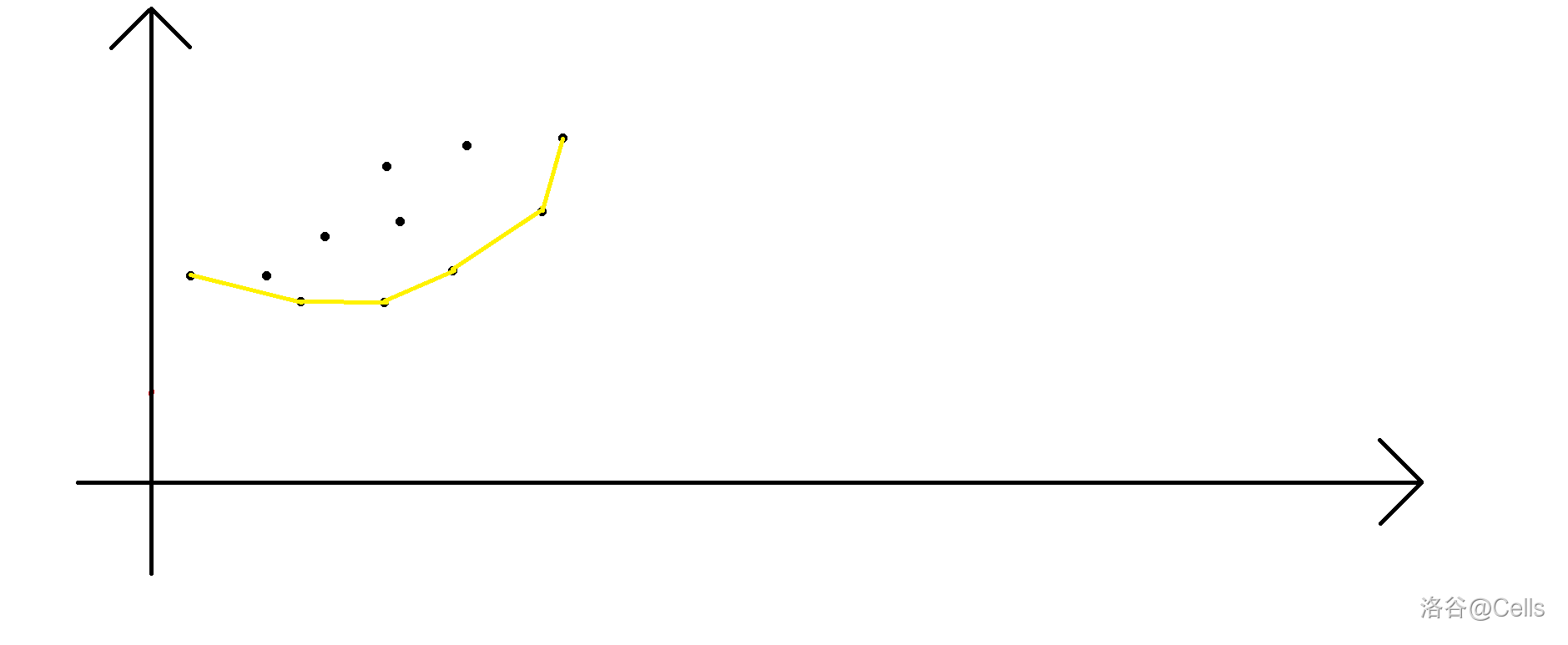 是的,我们发现在凸包内的点无论斜率是多少,都取不到,如果你学过斜率优化
