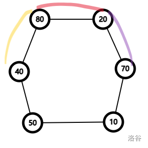 由上面的推理,不难得出 Elsie 只能拿 个,在这里也就是 2 个,又因为 Elsie 只能从两边开始拿,所以它能拿的区间就是上图中的三个区间,最大值就显而易见了。