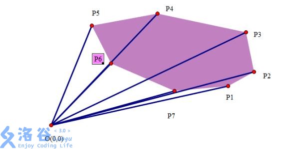则矢量叉积定义为由(0,0)、p1、p2和 p1+p2 所组成的平行四边形的带符号的面积。