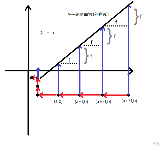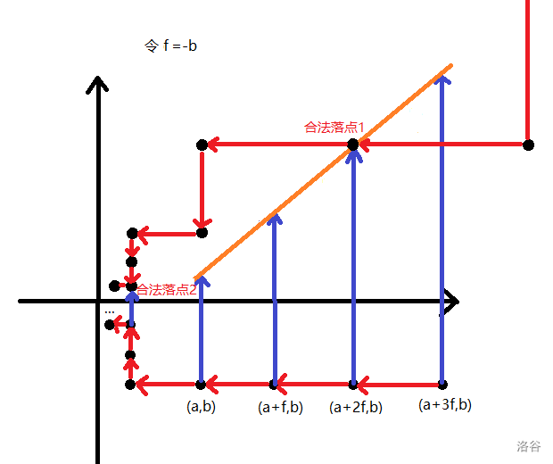 我们把它搬到平面直角坐标系上讨论。存在两个坐标 。那么无论是从 开始推还是从 开始倒推都是不断在向 轴靠近。直到某一次操作我们让 变为同号。