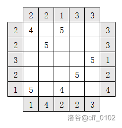 再看第一、三列,这里的 就只能分别放在最上/下面,这是因为它们的上/下面有 ,除掉一定会看到的 ,剩下的 只能放在最前面才能让其它数不被看到。