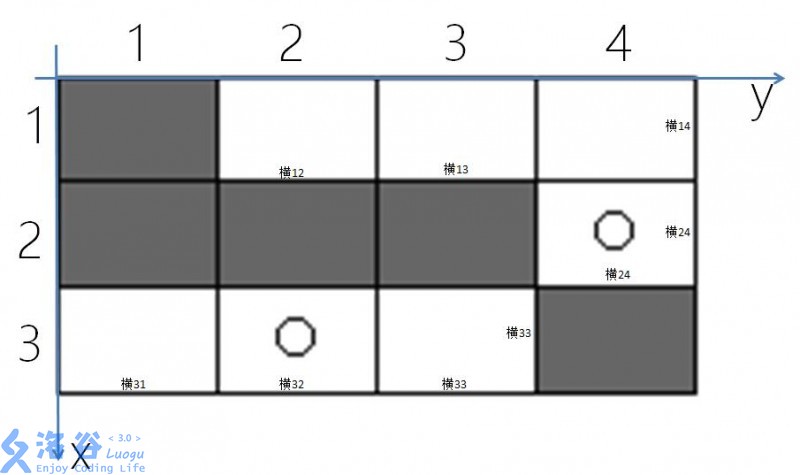 图中诸如“横/竖 xy”代表位于空格(x,y)下/右方的横/竖墙。