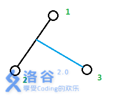 接下来考虑n=3时的情况。由于所有点均为叶子节点,很显然点3是从点1到点2的路径上分叉出来的,就像下图。