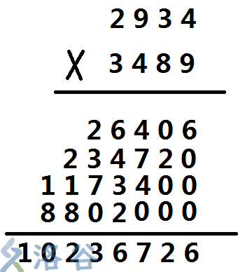 (非常的大,肯定不是人算的,所以我们需要电脑)我们在计算的时候是计算2934乘下面的每一位最后加起来。