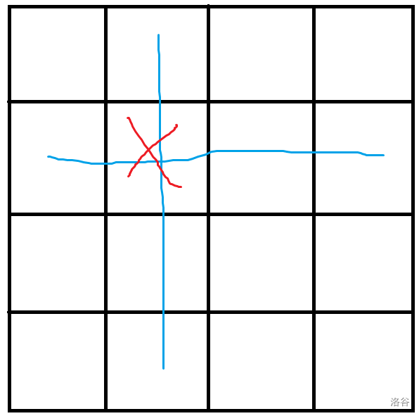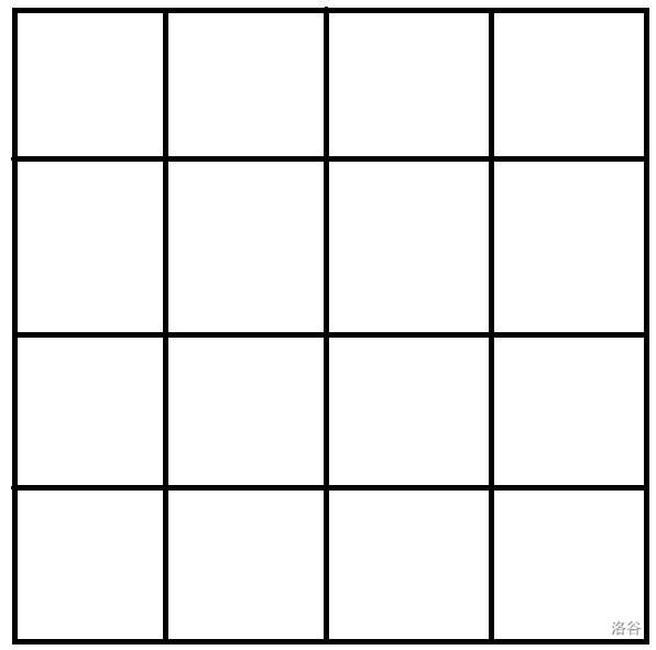 先是画一个边长为4的正方形格子,这个应该不用我多说。