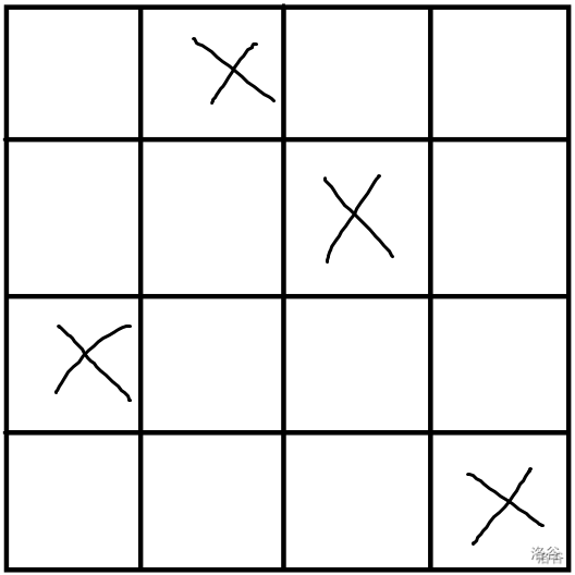 接着,我们也不难发现剩下来可以放的位置刚好少了一行、一列。