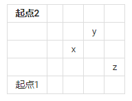 对于x与z之间的曼哈顿距离,是不是等于z到起点2的曼哈顿距离减去x到起点2的曼哈顿距离?