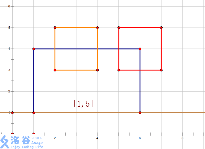 想象有一条扫描线,从下往上扫描完整个图案,每遇到一条上边或者下边就停下来: