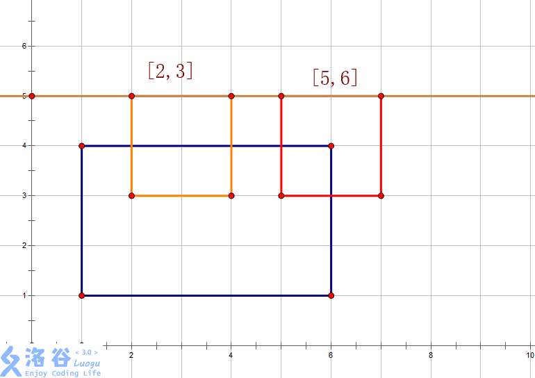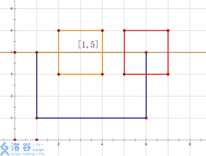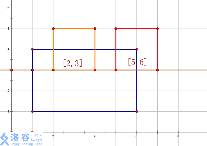 首先,要先把矩形拆成上边和下边,用1和-1分别代表下边和上边。然后按高度排序,这样数组从前往后处理就相当于扫描线从下往上扫描。如果是下边,就在对应区间上加1,如果是上边,就在对应区间上减1。