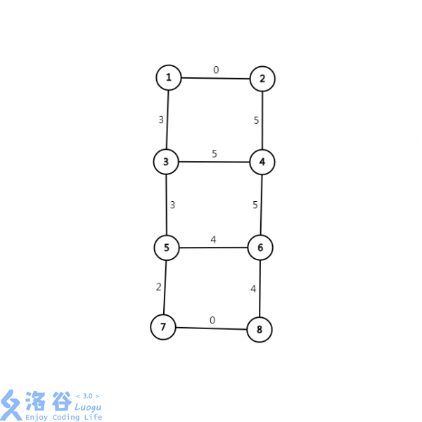 3和5之间,边权为3的边、在1到3之间,边权为3的边(节约篇幅,一并画出):