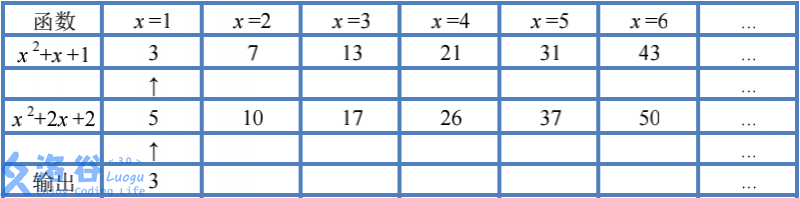 该题目给定了我们一些二次函数,不过这个函数只取了横坐标为正整数部分的值,并且三个系数都为正数,通过代数证明或者图像对称轴分析,都可以肯定,该函数在其定义域(正整数)上,单调递增且恒大于0。