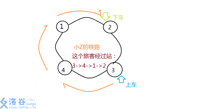 假设有一个订单 。那么这位乘客坐在火车上经过的站是上图涂了色的站。