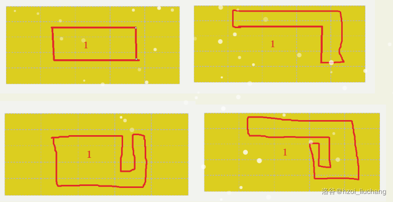 只有某一颗豆在路径所形成的多边形(可能是含自交的复杂多边形)的内部时,我们才可以得到这个豆子的价值