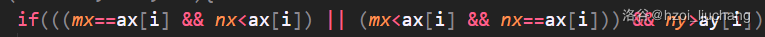 这是对于上下移动的判断,mx、my分别是移动之前点的横纵坐标,nx、ny分别是移动之后点的横纵坐标ax数组记录的是所有豆豆的横坐标,ay数组记录的是所有豆豆的纵坐标