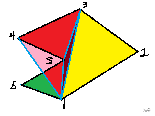 类似凸多边形,现将编号以此排序然后,一条一条边枚举,如果逆时针转就面积加,逆时针就减去该面积,容斥之后为凹边形面积,不过无需另外计算旋转方向,因为叉乘时已经计算方向,直接累加即可。