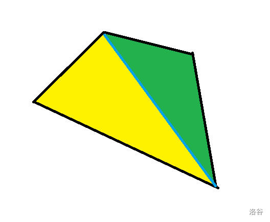 要求凸多边形面积,仅需以一个端点开始,将n边形分割为(n-2)个三角形,用向量叉乘求面积,累加面积。