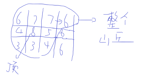 我对我的代码还是有点信心的#include<bits/stdc++.h> using namespace std; int R()//快读 { char c;int sign=1,res=0; while((c=getchar())>'9'||c<'0') if(c=='-') sign=-1; res+=c-'0'; while((c=getchar())>='0'&&c<='9') res=res*10+c-'0'; return res*sign; } const int dx[8]={1,-1,0,0,1,1,-1,-1}; const int dy[8]={0,0,1,-1,-1,1,1,-1}; struct point//用来排序的结构体 { int x,y,h; }a[1010*1010]; bool cmp(point x,point y) { return x.h>y.h; } int n,m,ans; int q[1010][1010];//矩阵 bool flag[1010][1010];//记录 void dfs(int x,int y) { if(x>n||y>m||!x||!y) return;//越界 flag[x][y]=1;//标记 for(int i=0;i<8;i++)//搜索 if(!flag[x+dx[i]][y+dy[i]]&&q[x+dx[i]][y+dy[i]]<=q[x][y]) dfs(x+dx[i],y+dy[i]); } int main() { n=R();m=R(); int o=0; for(int i=1;i<=n;i++) for(int j=1;j<=m;j++) { q[i][j]=R(); a[++o].h=q[i][j]; a[o].x=i;a[o].y=j; } //以上是读入 sort(a+1,a+1+o,cmp); for(int i=1;i<=o;i++)//从最大的开始搜 { int x=a[i].x,y=a[i].y; if(!flag[x][y])//如果没去过 { bool f=1; for(int p=0;p<8;p++)//判断是否可以作为山顶 if(q[x][y]<q[x+dx[p]][y+dy[p]]) f=0; if(f) dfs(x,y),ans++;//搜索出整个山丘 } } cout<<ans; }