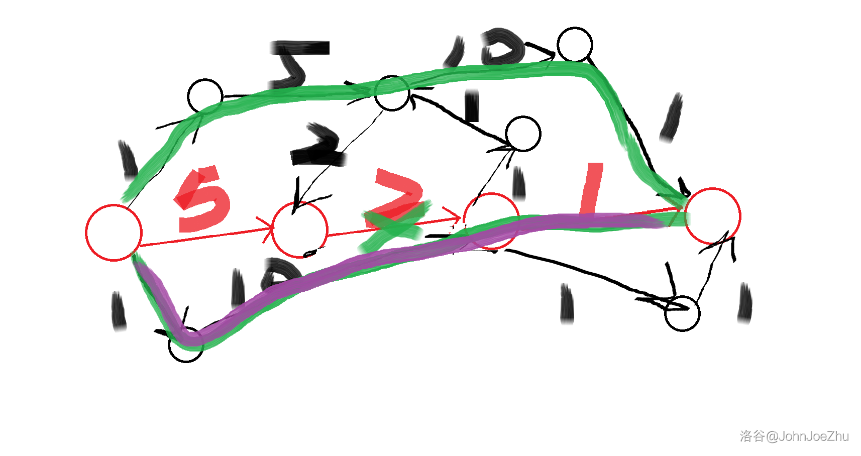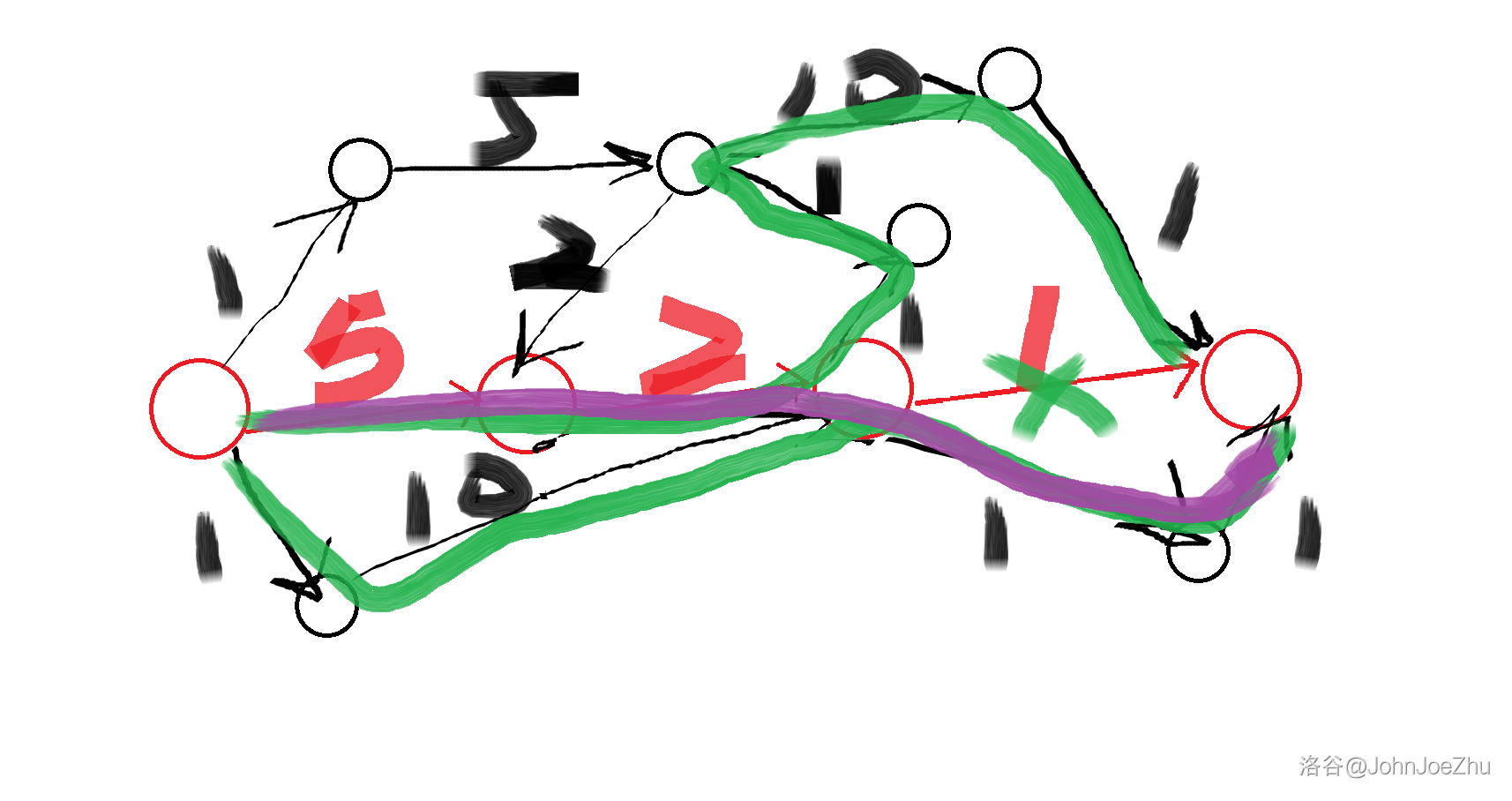 $$\text{其中}x_uj,\text{且}1-x_u,x_v-n\text{属于原最短路径},x_u-x_v\text{不属于原最短路径且使答案最优} $$注意此时的大于和小于是指我们对最短路上的点编号后的结果