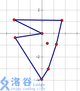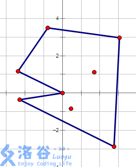 考虑把点按极角排序,2号点极角为0,其它为从2号点顺时针旋转的角度