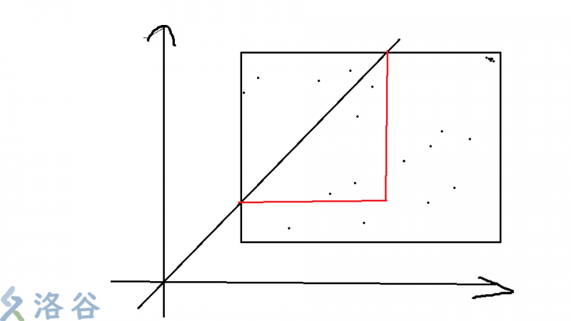 但是电脑不长眼睛,解决 假设左下角到y=x的距离<右下角到y=x的距离 本来是可以直接算的,但是考虑到重量需要处理,所以翻上去翻下去跑两次即可。