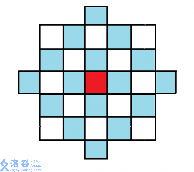 我们对于每一个位置,将他们与自己走三步的点进行连边,边的权值为到达的点的权值。如图所示(注意它可以向上再向下再向上这类的情况,所以有16个方向):