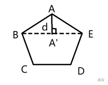 不妨设我们要移动的顶点是 ,发现想要 最小其实只需要把凸多边形变成一个 刚好等于180°的内角即可,我们还知道,直线外一点到直线的距离最小的是垂线段,于是又可以得到下面这张图的移动方式