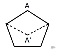 我们不难想到,让一个凸多边形变成不是凸多边形,其实就是让一个凸多边形变成凹四边形,具体怎么转换呢?我们不妨看一张图