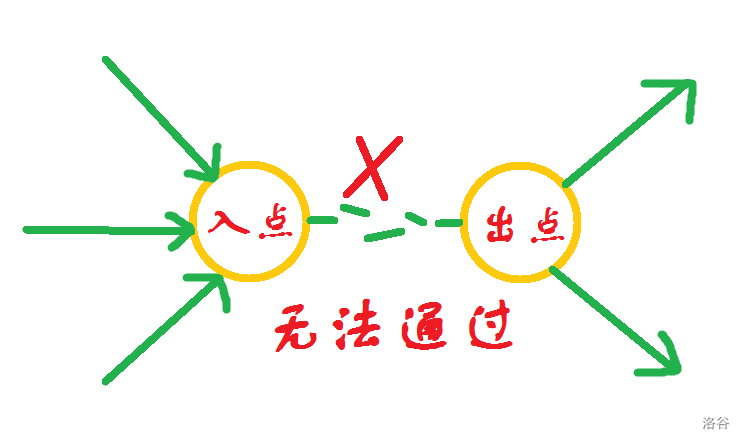 将一个点 拆成一个入点 以及一个出点 ,并且在 、 之间连一条边,权值为点 的点权,这样破坏掉点 就相当于切断 和 之间连的一条边,切断后所有想通过 点的路径会被阻断。