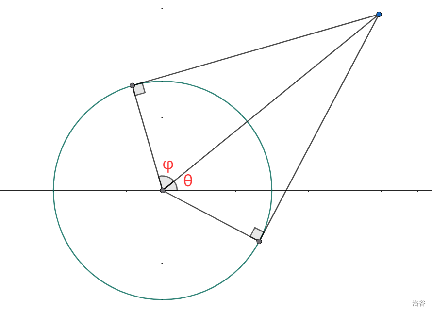 给定一个半径为 ,圆心在原点的圆,再给定 个点的坐标 。这些点构成一个图,任意两点之间有连边,当且仅当两点所在直线与圆相离,求图的最大团的团数(最大完全子图的顶点数)。