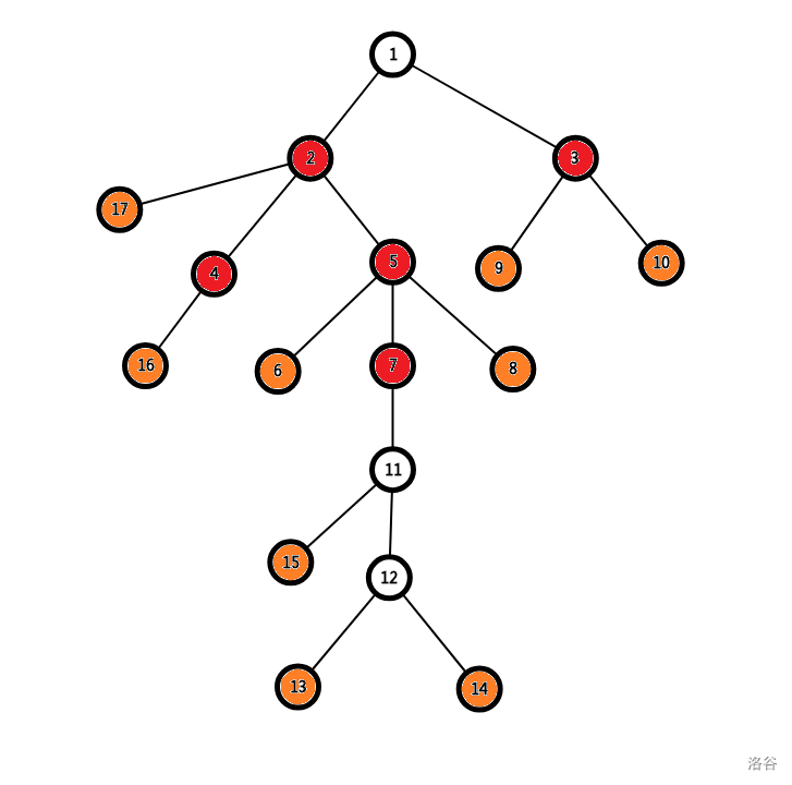 dfs,让 Bessie 开始走。Bessie 遇到了两个红点,说明只需要两个农民就可以锁住 Bessie 了(在节点 和节点 )。同理,我们也可以模拟一下样例。鉴于篇幅有限,我放在了 云剪贴板 里面,大家可自行观看。