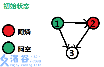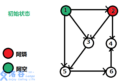 首先看看图的类型,有向无环图,说明阿燐和阿空只能朝着一个方向走,不可能循环。