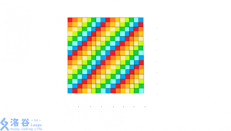 但是由于我们机器人的走法是循环的,因此如果我们把这个矩阵复制几份拼在一起你就发现同一副对角线的元素相邻了