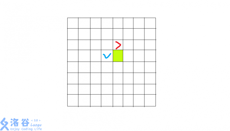 结论1:属于同一副对角线的两个格子方向必然相同