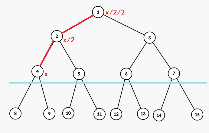 也就是说每个点与其子树内向下第层的点最终的权值相等。