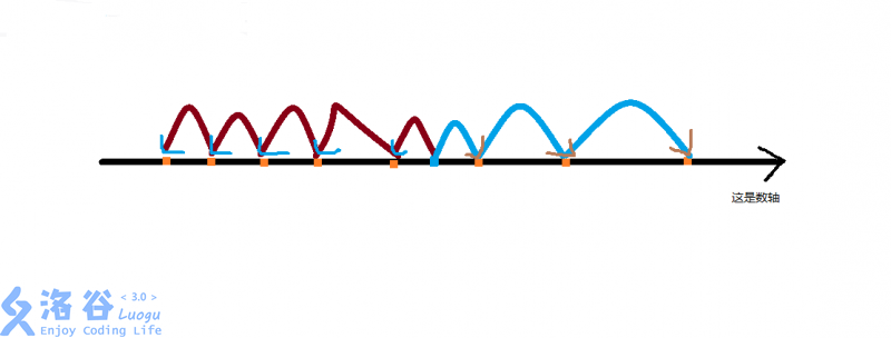 肥宅美味值的情况,就是在考虑喝水的情况下按照饼干温度依次吃下去(我最喜欢这种贪心思想了),就可以求出最小值了。我们先对可爱的小狐狸要吃的饼干进行排序,然后开始遍历从w到各点的距离,记得取绝对值!我们可以画张图
