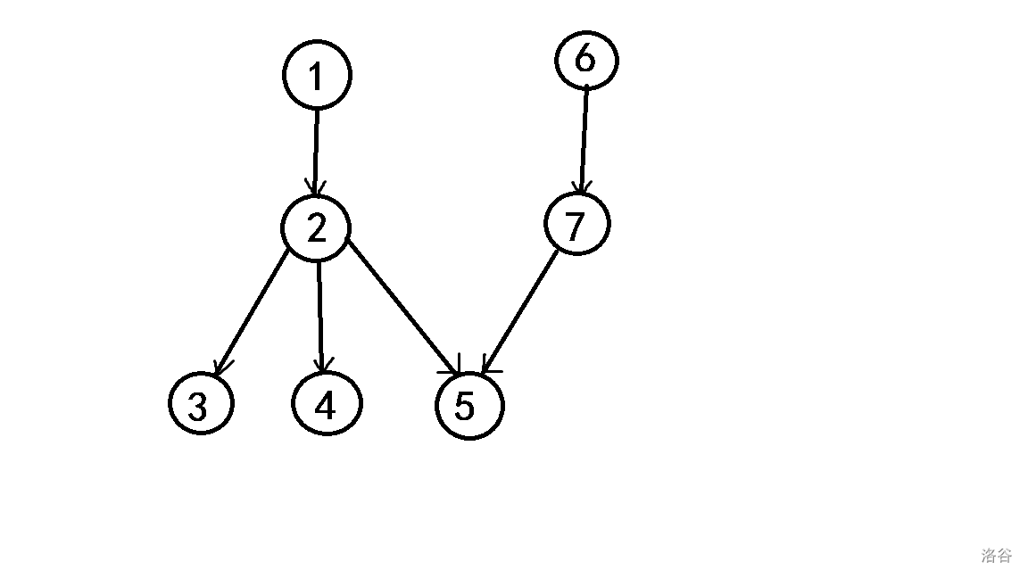 上面的是原图,我们把图中的每一条边 拆成两条边:一条流量为 ,费用为 ,不妨取名叫 ;一条流量为 ,费用为 ,取名叫 。然后源点向每个入度为 的点(也就是链覆盖的起点)连边,流量 ,费用 ;每个出度为 的点(也就是链覆盖的终点)向汇点连边,流量 ,费用 。