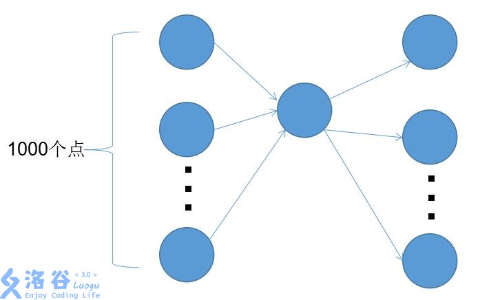 如果那么对于左侧的每一个点,都会去更新右边的所有点,复杂度就是平方级别的,你可以试想如果这种结构重复十次然后的复杂度