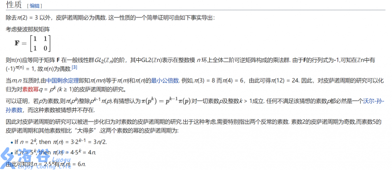 打开OEIS输了几项进去,发现这个数列是存在的,然后就把我引向了这个词条 皮萨诺周期