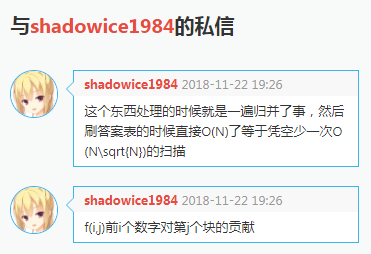 - 若和在同一块内,则拆分成和这两个区间的差,内部贡献就是求出的的值,两块的贡献用归并求。