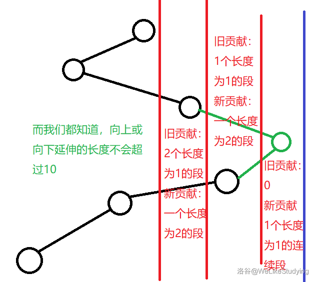 - 没错,如果我们暴力向左扫描,我们将会看到,至多会影响 个点的贡献(它必须是边缘是扫描到的右端点的数的连续段,且长度不超过 ),即使我们一一更新,复杂度也是完全可接受的。