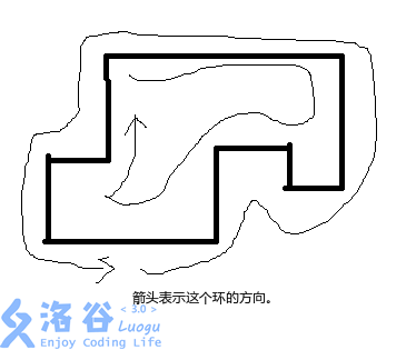 然后,我们强制规定用左手摸着的前进方向为这条边的方向。对于一个闭合环的内圈,这个方向为顺时针,而对于外圈则是逆时针。