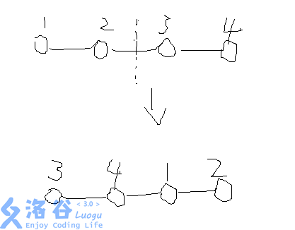 因此,我们将删去边的其中一条更换到环的最后面,然后将平衡树在另一条的位置分裂成两部分。最后,我们将应该删去的两条半边删去即可。
