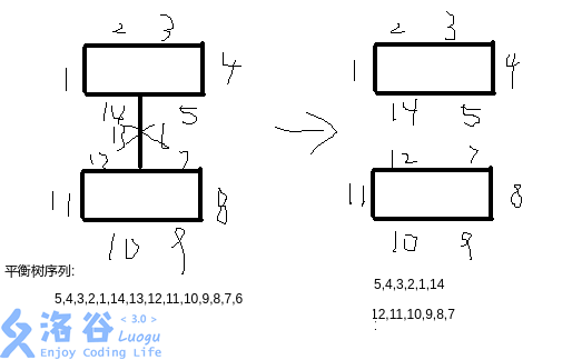 我们删掉后,平衡树序列会变成两部分,这两部分在环上都是连续的。